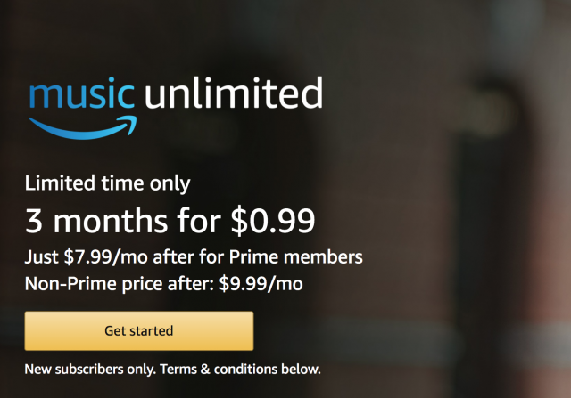 Amazon is offering a pretty good deal for its Music Unlimited service if you’ve never tried it before. You can snag three months of service for only $0.99. After that, Amazon will bill you $7.99 a month if you’re a Prime subscriber, or $9.99 a month if you’re not. Prime members get the same pricing that Google previously offered for early adopters of Google Music, so that’s definitely a plus.