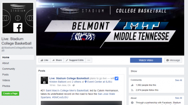 Facebook is partnering with Stadium, a live streaming sports site, to stream 47 college basketball games this year. The first game is tipping off tonight at 7:30PM. Some of the notable teams that will be playing include Nevada, Wake Forest, Florida Gulf Coast, and other teams from the MWC, A10, and WCC.